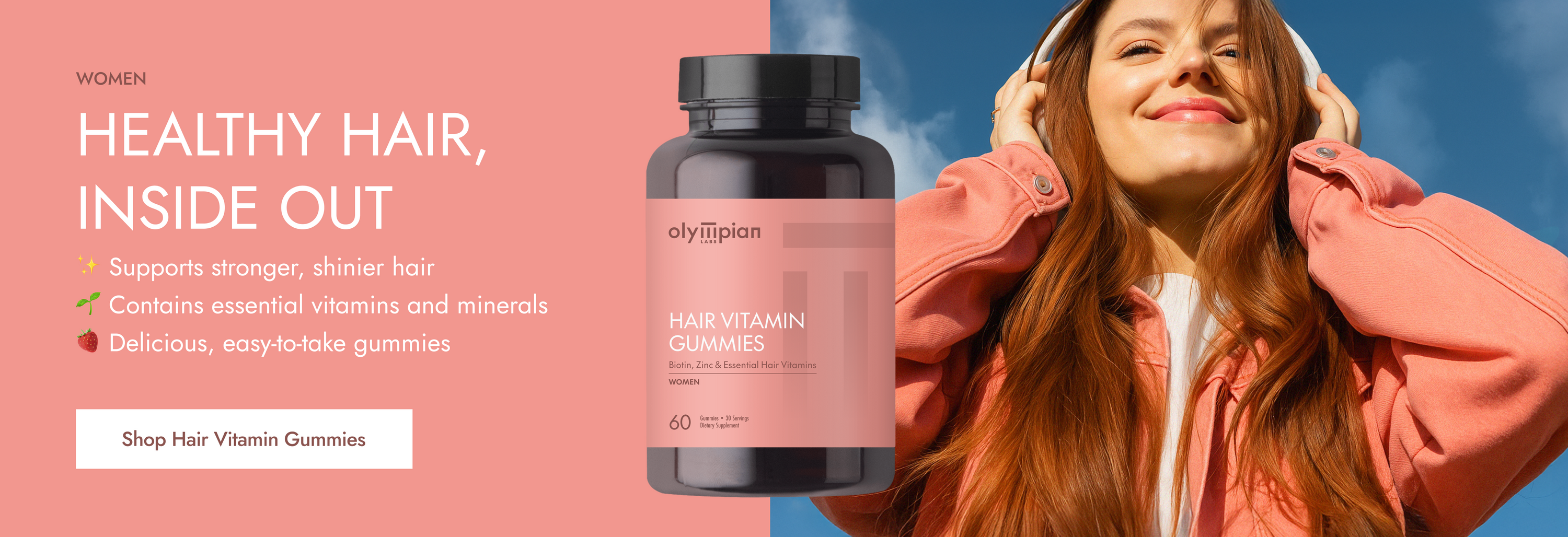 Olympian Labs Hair Vitamin Gummies bottle on a white background